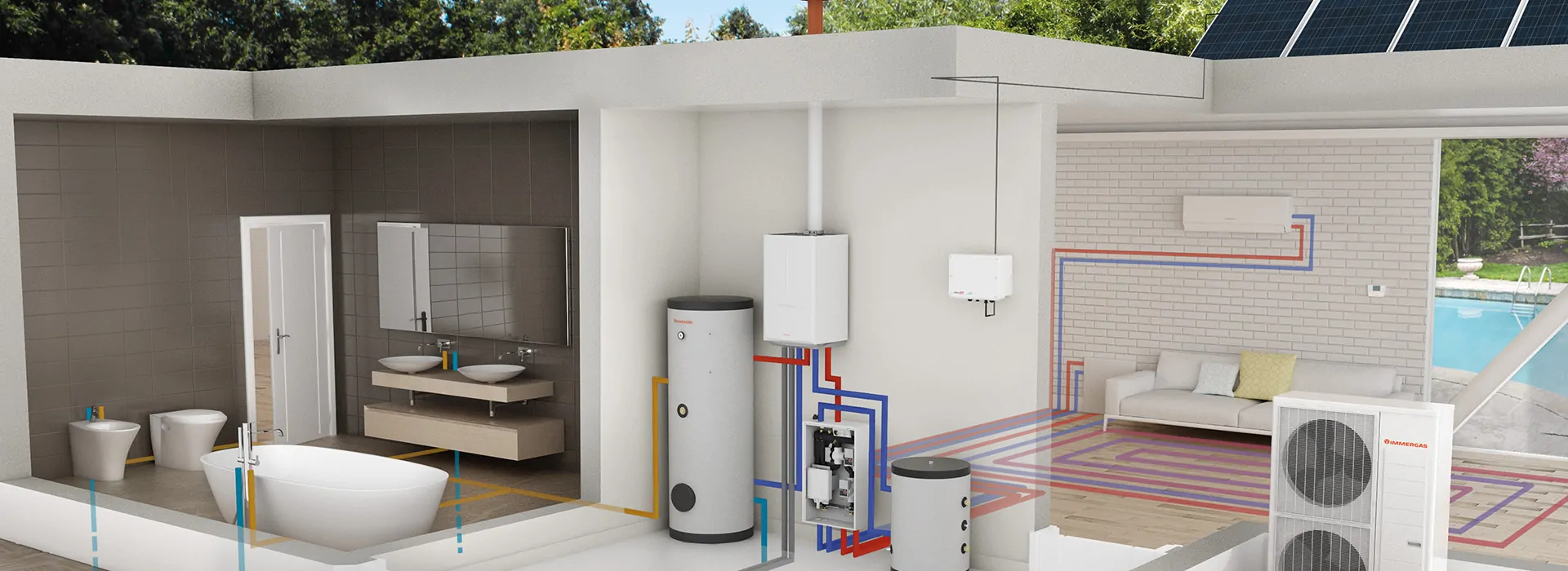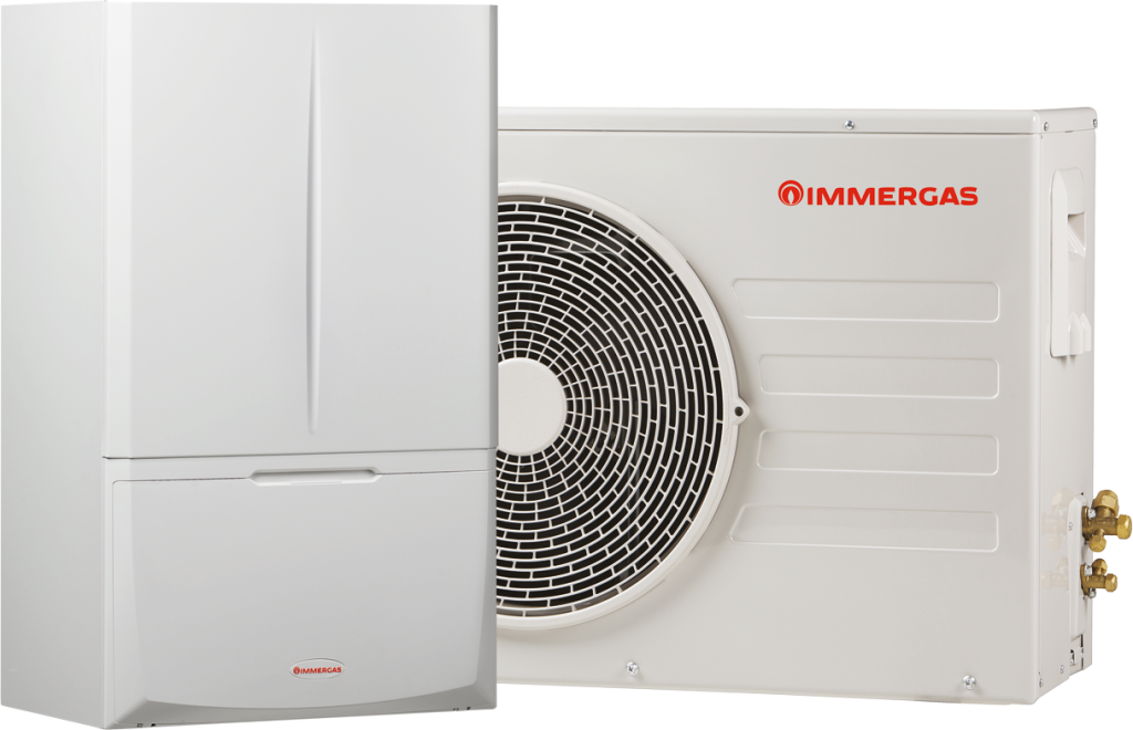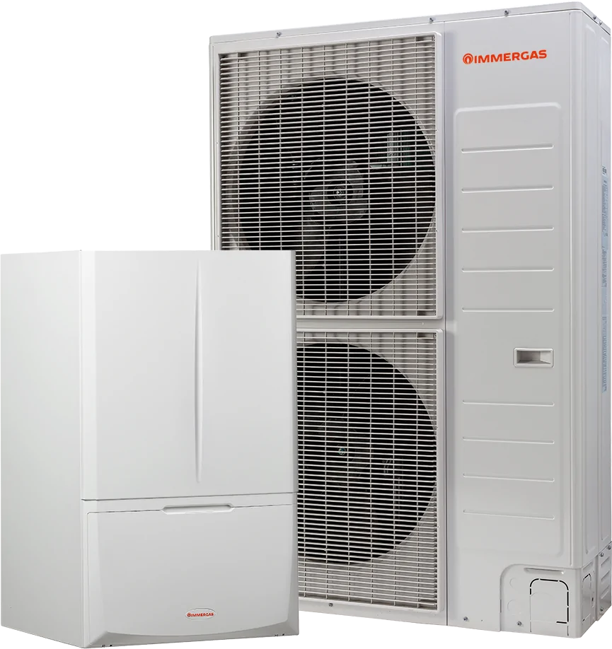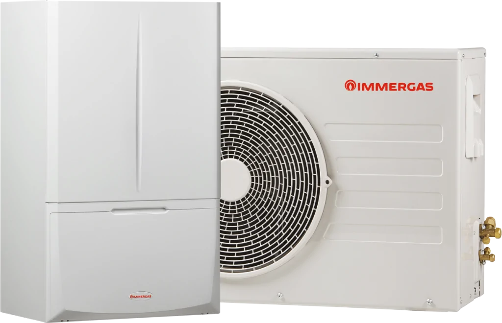 Гібридна система підвищеної потужності на основі інверторного реверсивного теплового насоса типу “повітря–вода” з трифазним живленням, та двоконтурного конденсаційного газового котла.